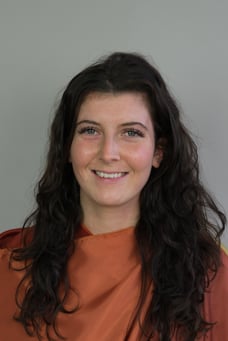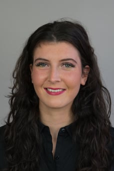 Sarah met make-up met een mooie zwarte blouse. Zwart is eigenlijk alleen mooi bij wintertypes