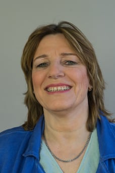 Karen met make-up met kleuren die haar heel goed staan en laten stralen