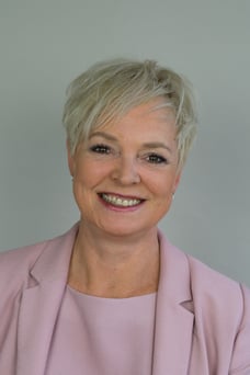 Carola met make-up met een kleur die haar prachtig staat. Ton-sur-ton is ook mooi voor lichte lentetypes