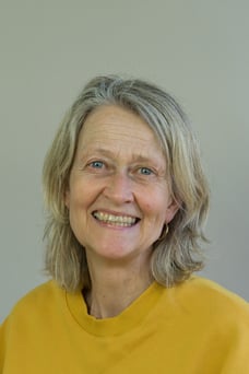 Astrid zonder make-up met een gele kleur die ook niets met haar doet. Zomertypes kunnen misschien beter niet helemaal in het geel gaan